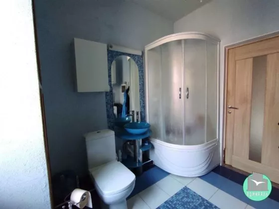 Первый этаж кухня столовая 36 м2 с камином, большим кухонным гарнитуром со встроенной техникой, духовка, плита, посудомойка, комната и санузел 8 м2 с душевой кабиной. Второй этаж три спальни с 2 гардеробными и санузел 6 м2 с ванной. Вода, скважина, никогда проблем не было . Новые насосы, в доме и скважине. Тёплые полы на обоих этажах, отопление и свет разбиты по зонам на три фазы. Свой столб, 15 КВт. Две сплит системы. Оборудование для хорошего интернета.