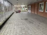 Двор выложен тротуарной плиткой, а под металлическим навесом во дворе есть место для парковки шести машин.
