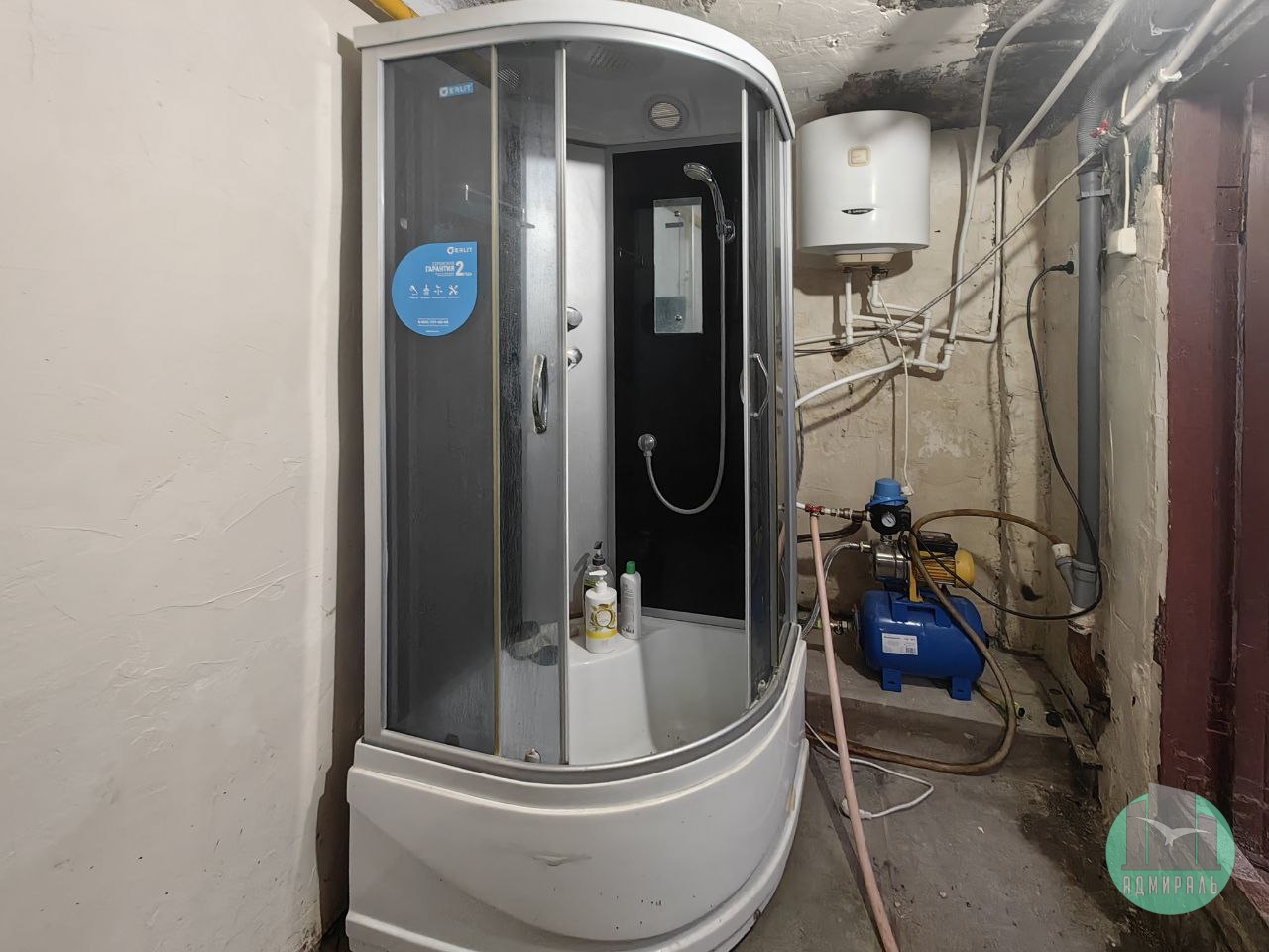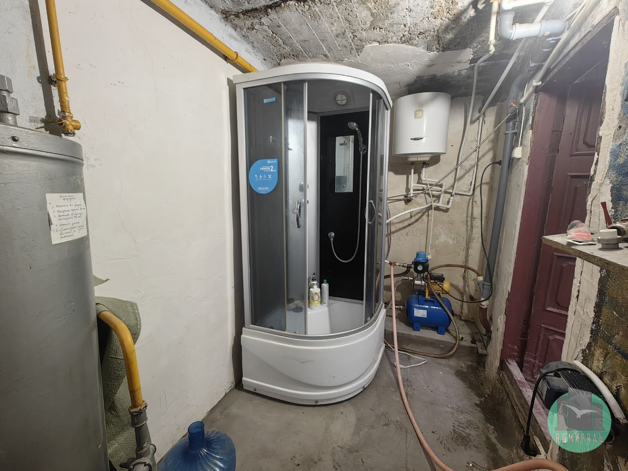 В отдельном помещении (бойлерной) установлена душевая кабина, водонагреватель, газовый котел и насосная станция. Санузел пока уличный, но при желании его легко обустроить внутри, бойлерная позволяет это сделать (проведена вода).
