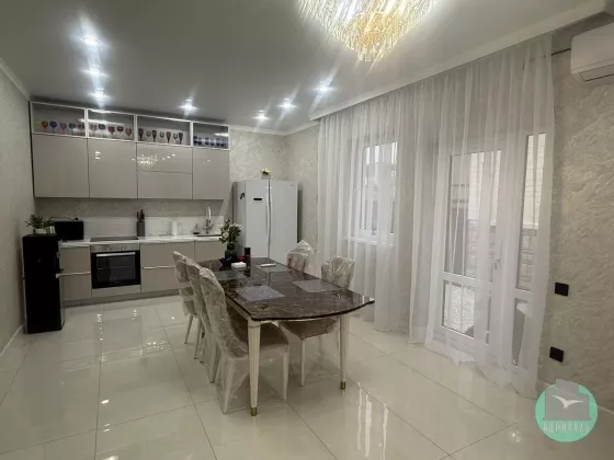 Современный Дом 196 кв. на первой береговой линии! Два этажа. Газ, вода и канализация центральные. Забор по всему периметру и откатные ворота. 3 сотки земли. Два этажа. Двор облагорожен. До моря 100 метров! Свежий качественный ремонт во всём доме.