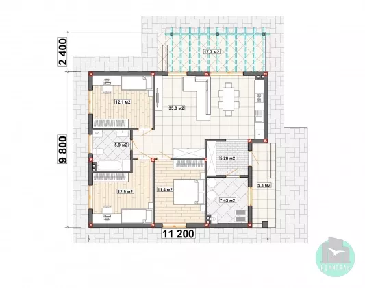 - Большая кухня-гостиная - 17 кв.м. и большая терраса - 17 кв.м.