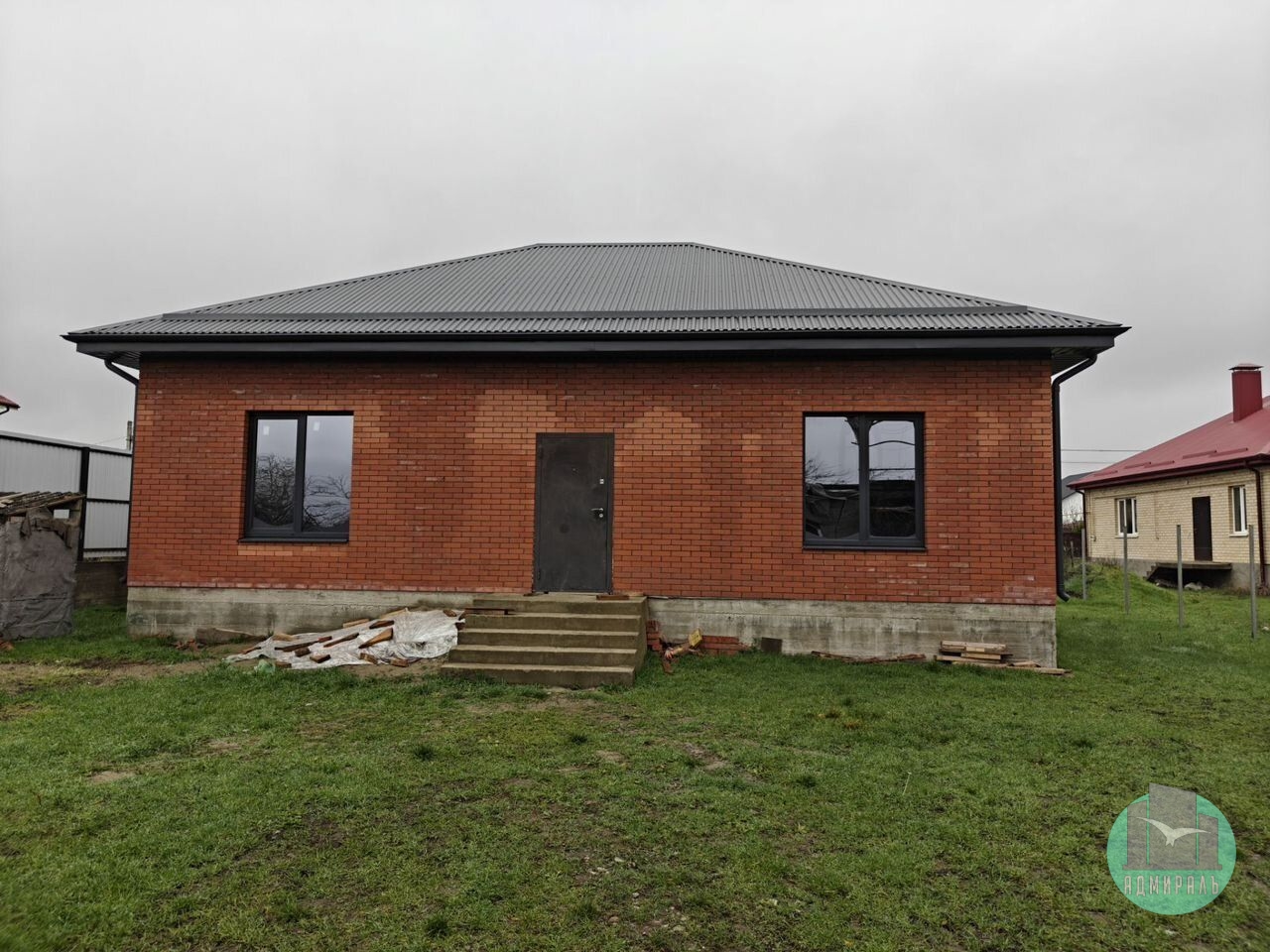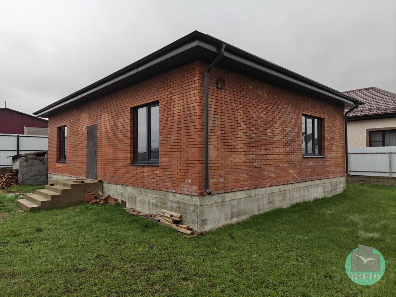 Продается одноэтажный кирпичный дом площадью 108 м² с предчистовой отделкой на участке 4 сотки (категория земли — ИЖС). В доме 3 раздельные комнаты, кухня-гостиная, совмещенный санузел. Право собственности — собственник, возможна покупка в ипотеку, включая семейную.