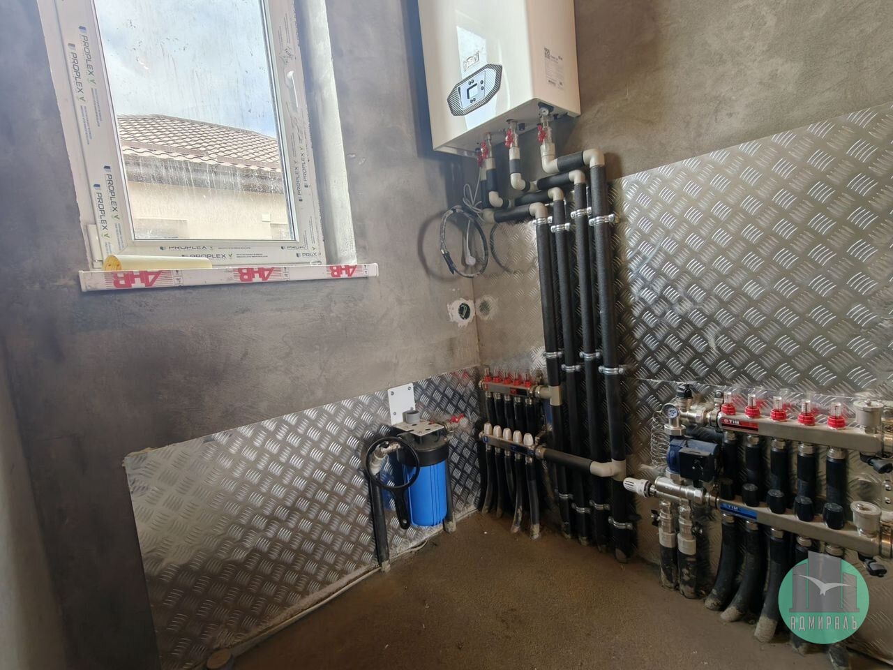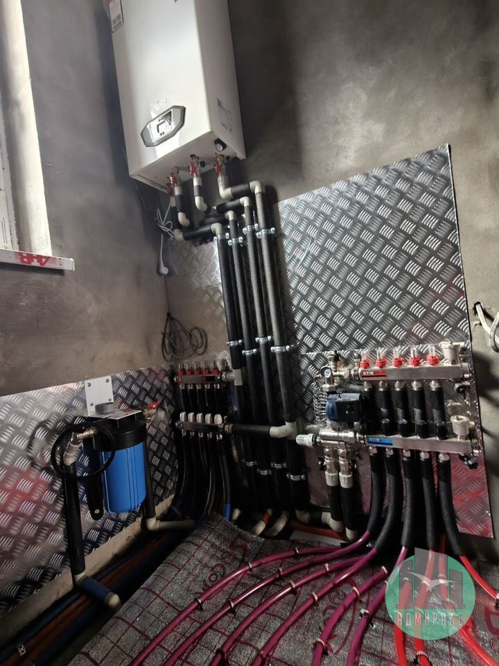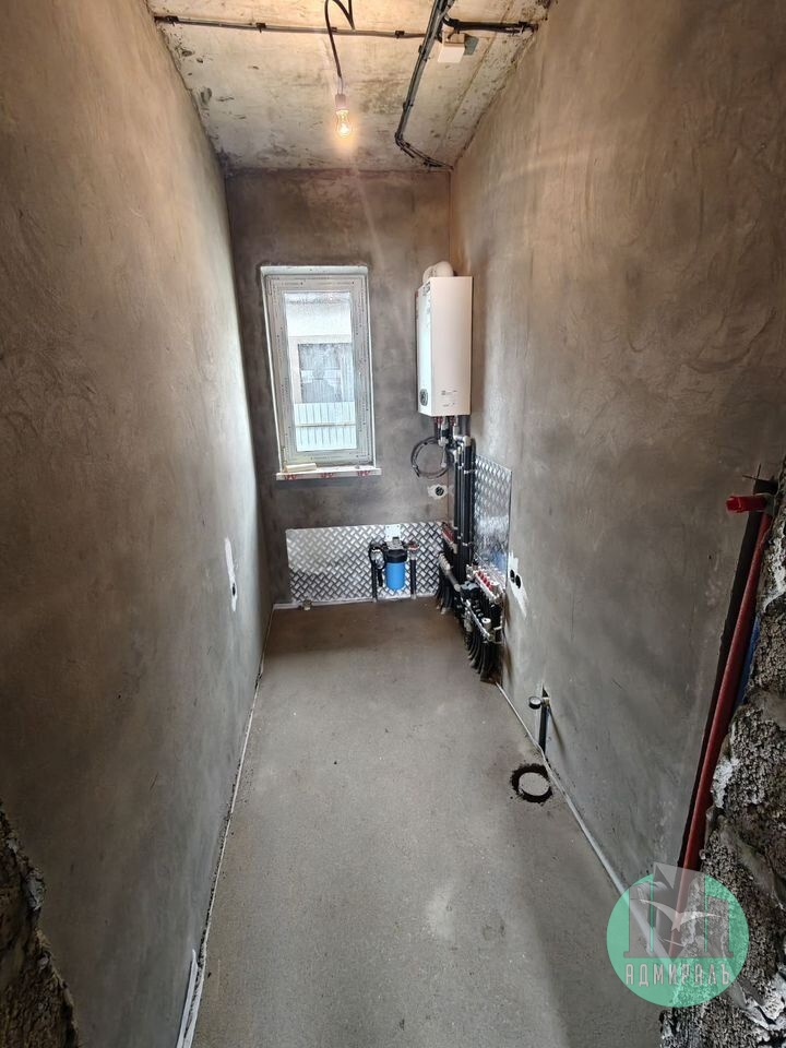 Сейчас ведутся сантехнические работы. К моменту сдачи будет выполнена разводка отопления (автономное газовое), выполнена стяжка пола и смонтированы натяжные потолки. В доме предусмотрено центральное водоснабжение, центральная канализация и газ в доме.