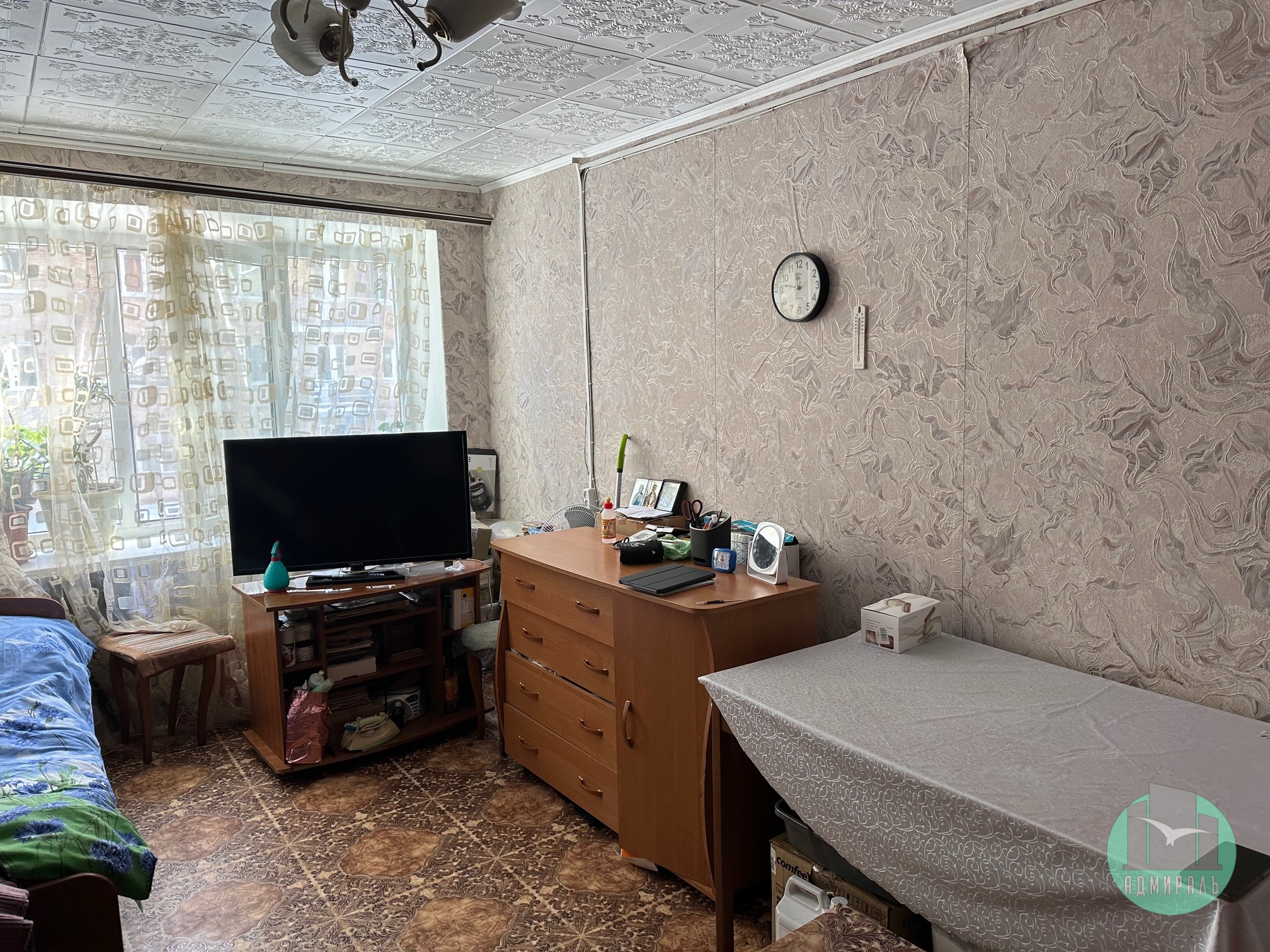 Продаётся тёплая комната площадью 18,5 м² в кирпичном доме 1969 года постройки. Косметический ремонт, состояние — нормальное. Все коммуникации центральные.