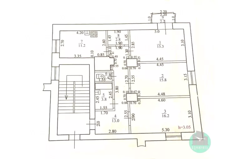 Три раздельные комнаты: 15.3, 15.8, 16.2 м². Вид из окон во двор и в парк.