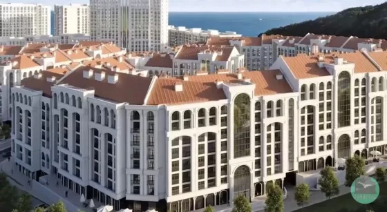 Современный комплекс построен из качественных каменных материалов, архитектура нео-классика, закрытый двор без машин, уникальный двор-Сад с многослойным озеленением, с дизайнерскими зонами отдыхами. На территории комплекса будут расположены два бассейна, фитнес-зал , на первых этажах различная коммерция, кафе, рестораны, магазины, подземный паркинг, система " умный дом" с дистанционным контролем. Комплекс расположен в удобной локации, 5 мин на машине до пляжа Мысхако , также в пешей доступности, школы, дет.сады, Поликлиника.