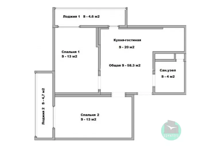 | Площадь, кв.м. | 58.3 |