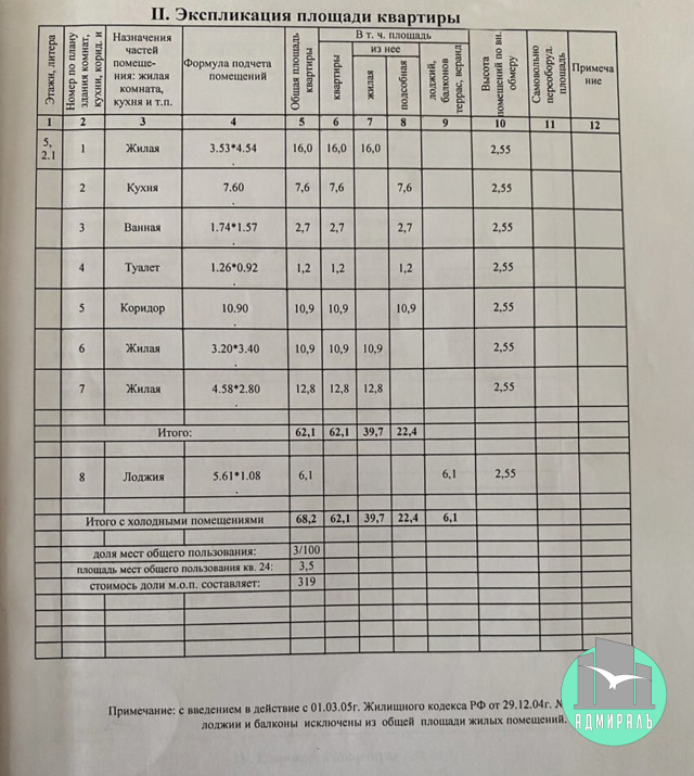 | Площадь, кв.м. | 62.1 |