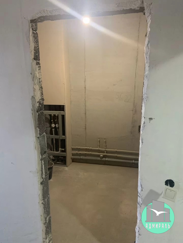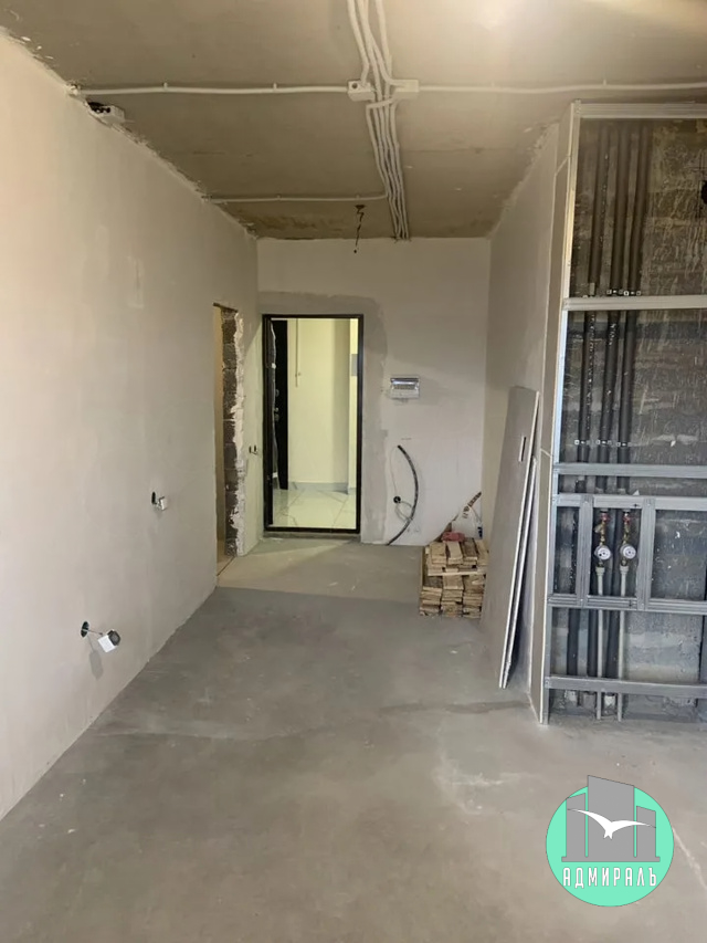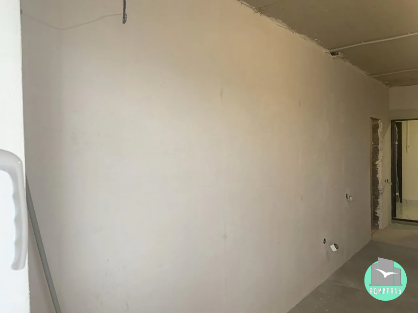 В студии проведены вода и электричество, сделана стяжка пола, стены оштукатурены.