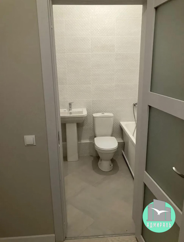 Выполнен качественный ремонт, ламинат, флизелиновые обои под покраску, натяжные потолки, керамическая плитка в санузле, установлена сантехника.