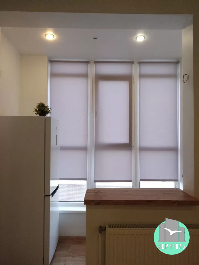 В квартире выполнен новый ремонт, который создает уютную атмосферу. Лоджия переоборудована в кухню . Есть место для дополнительных шкафов на стене и над холодильником. Мойка из литьевого мрамора, барная стойка. Варочную поверхность можно оставить настольной или установить отдельную электроплиту с духовкой на место холодильника, а сам холодильник перенести в комнату или прихожую.